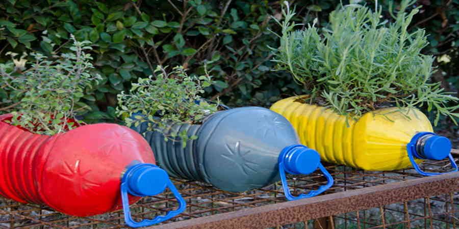 Puedes utilizar cubetas o botellas de plástico cortadas a la mitad que sirvan de reemplazo como macetas.