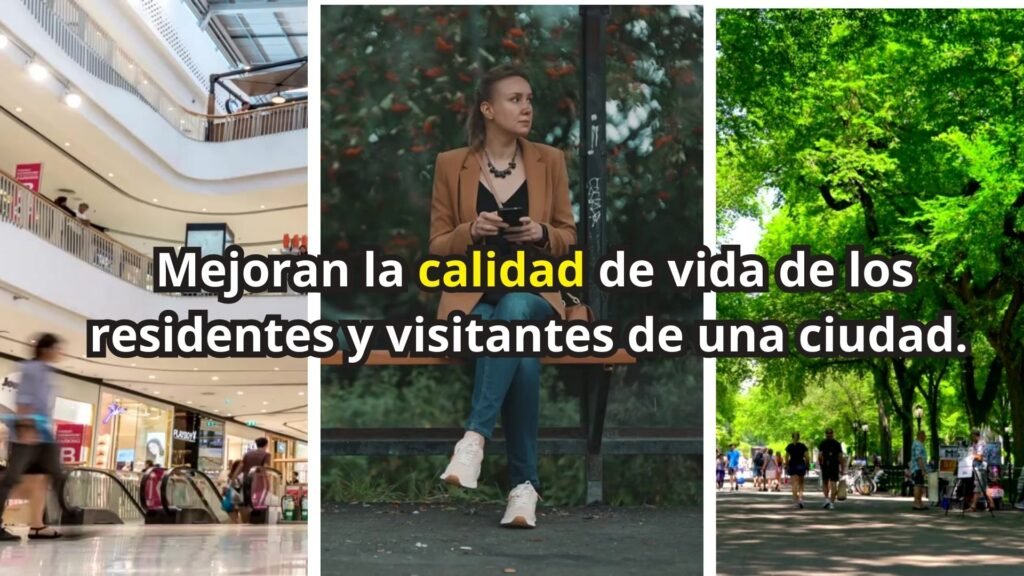 Las personas se encuentren y se sienten juntas. Las bancas en parques y macetas en plazas, por ejemplo, fomentan la comunicación y la conexión entre los residentes y visitantes de la ciudad, creando un sentido de comunidad y bienestar emocional.