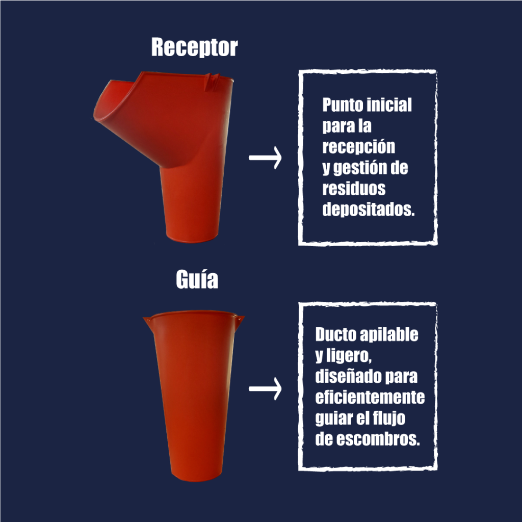 Fabricado en Polietileno de alta resistencia, el Cascajero se destaca por su durabilidad y capacidad para resistir las condiciones más exigentes en cualquier sitio de construcción. Pero su verdadero encanto radica en su diseño inteligente, que permite un montaje rápido y sencillo. ¡Adiós a las complicaciones en la descarga de escombros!