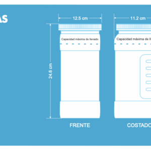 Está etiquetado con la leyenda “Residuos Peligrosos Líquidos, Biológico-Infecciosos” y el símbolo universal de Riesgo Biológico, garantizando un manejo responsable y seguro.