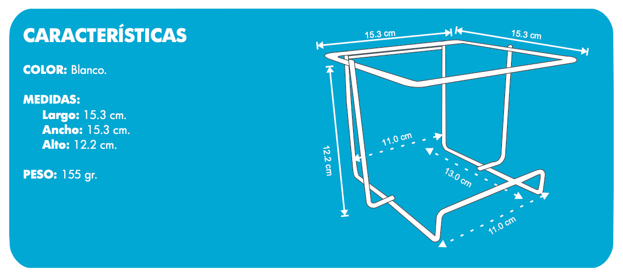 Fabricada en acero y recubierta con pintura electrostática anticorrosiva, esta canastilla garantiza durabilidad y resistencia en cualquier entorno. Su diseño permite colocar el contenedor PC-2 en la pared, optimizando el espacio y evitando que el recipiente quede en el suelo, donde podría representar un riesgo de contaminación o accidentes.