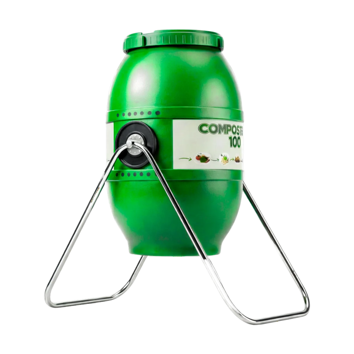 En la práctica, el Compostero Giratorio 100 ayuda a mantener orden en el compostaje. Además, sus orificios laterales favorecen una ventilación adecuada. Esto reduce la humedad excesiva y ayuda a evitar malos olores. Así, el material se mantiene en mejores condiciones durante todo el proceso. El diseño cerrado protege el contenido de plagas y de la exposición directa. Al mismo tiempo, el material con protección UV prolonga su vida útil en exteriores. Incluso, llenarlo y vaciarlo resulta sencillo, lo que facilita su uso continuo.