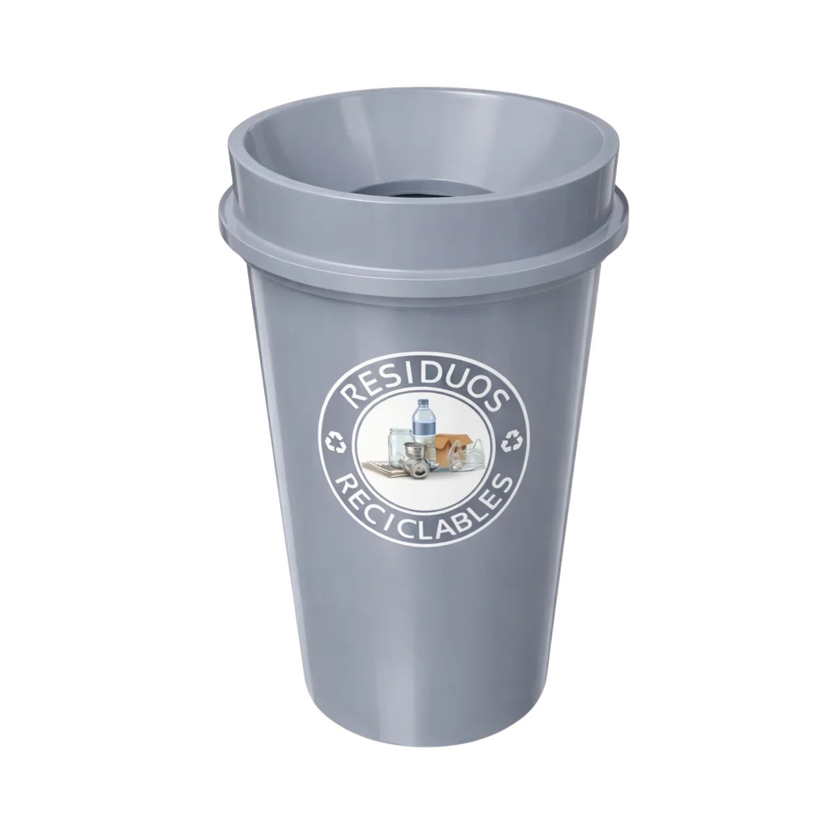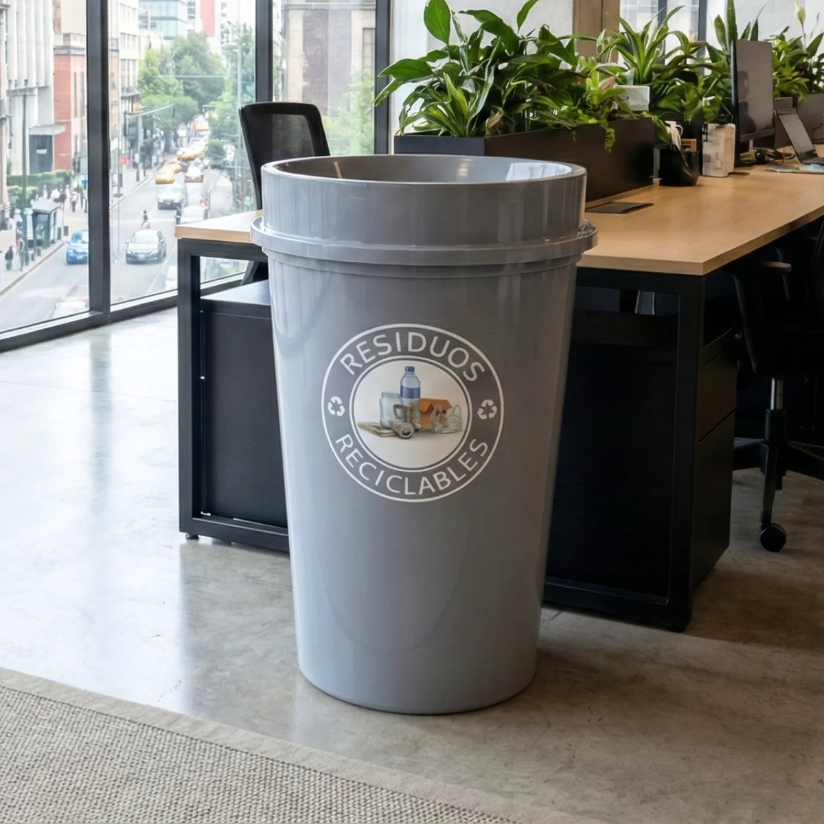 El diseño cilíndrico del Contenedor con tapa facilita su maniobra, permitiendo moverlo con comodidad en distintos espacios. La tapa desmontable es un elemento clave que no solo cubre los desechos para mantenerlos fuera de la vista, sino que también ayuda a prevenir la emisión de olores desagradables y reduce el riesgo de focos de infección.