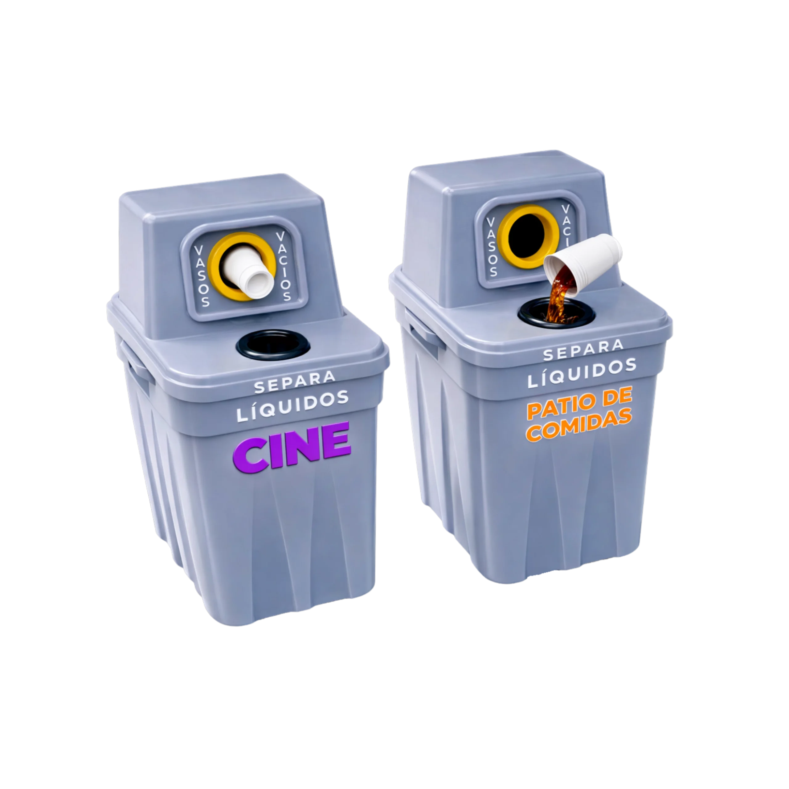 Este Contenedor para cines no solo mejora la imagen del complejo, también optimiza los procesos internos. Al separar líquidos y sólidos desde el origen, se simplifica el manejo de residuos, se mejora la higiene y se refuerza la percepción de calidad del servicio ante los clientes.