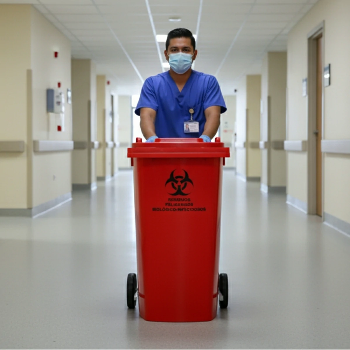 El Contenedor RPBI con pedal para el depósito de residuos, está diseño para evitar el contacto de las manos con el contenedor durante su transporte y, de esta forma, evitar posibles contagios.