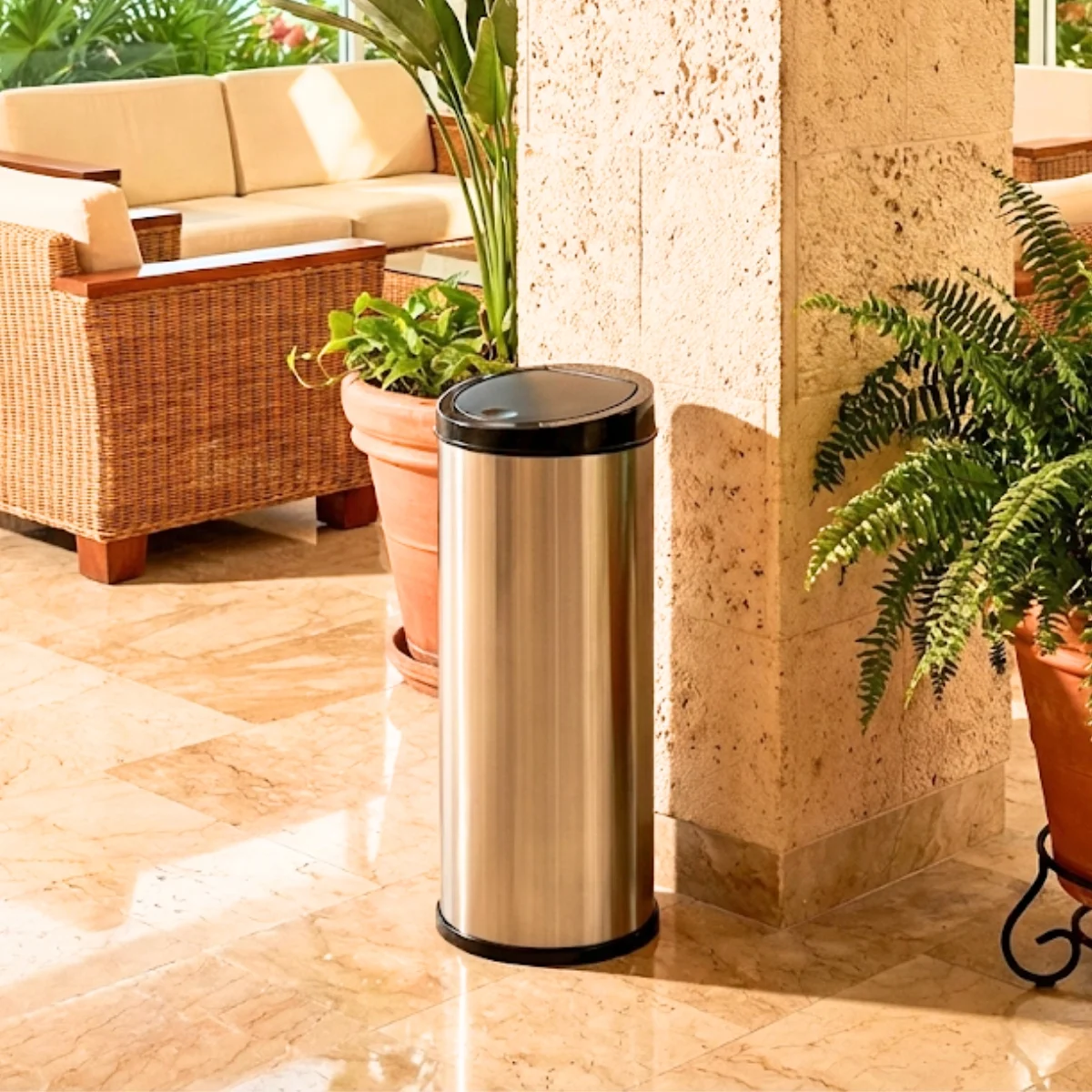 El basurero balancín cilíndrico de acero también es fácil de limpiar, lo que lo hace ideal para su uso en ambientes comerciales.