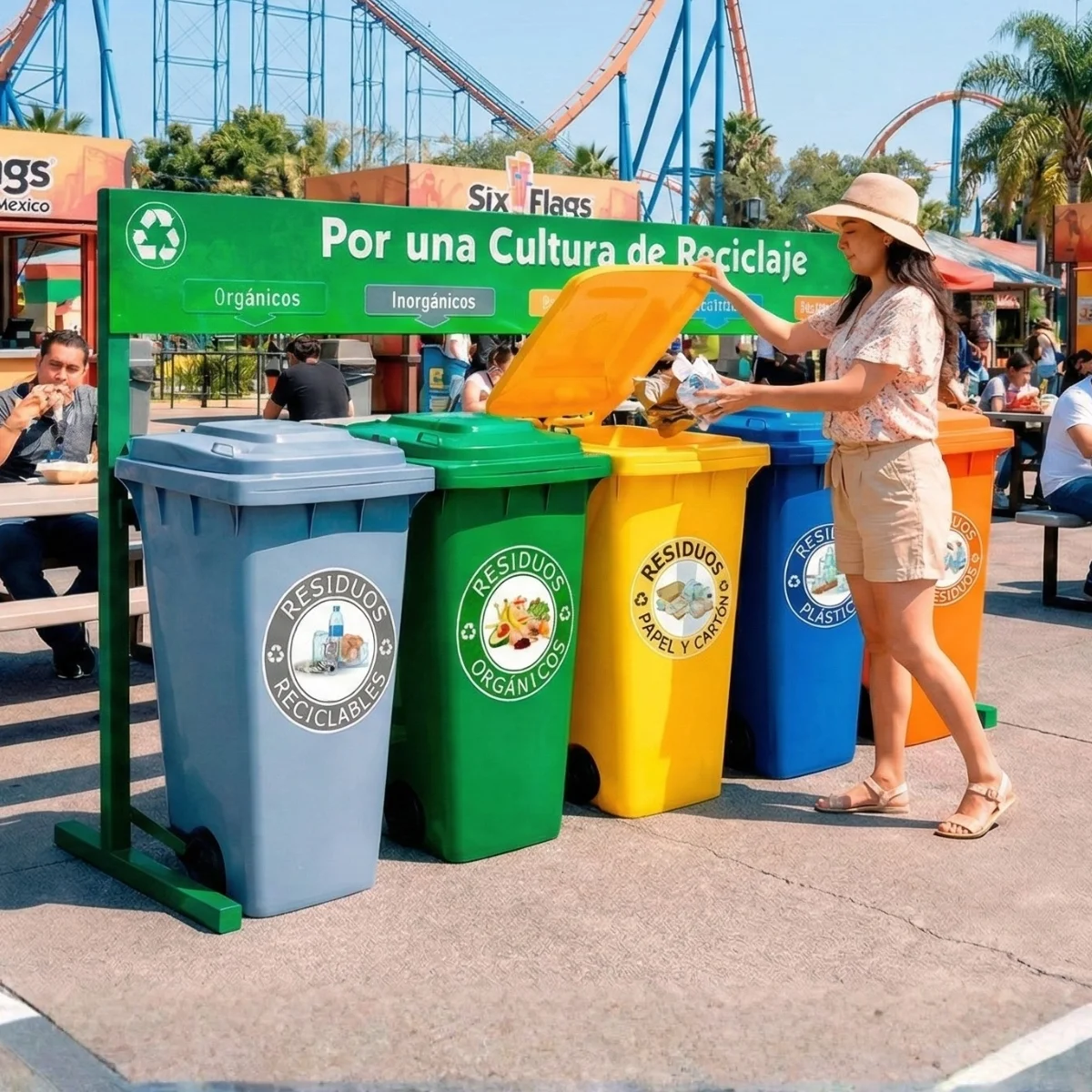 Con un sistema antivandalismo que incluye pernos y llaves especiales, estas estaciones garantizan la seguridad del contenido y la durabilidad en entornos públicos. Además, su diseño permite integrar espacios publicitarios con láminas galvanizadas calibre 18, cumpliendo con la NOM034, lo que las convierte en una herramienta útil para transmitir mensajes o promociones mientras se fomenta el reciclaje.