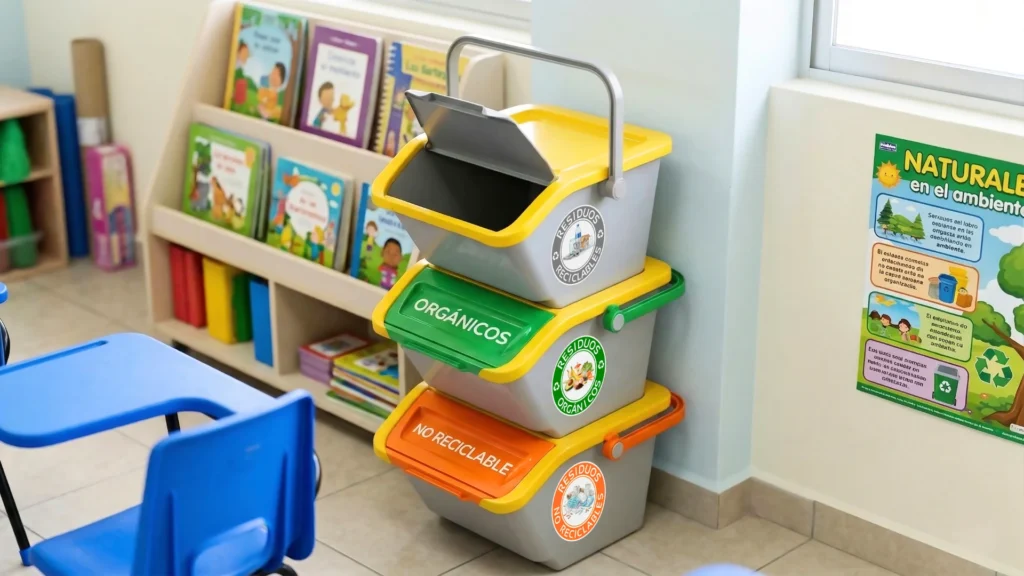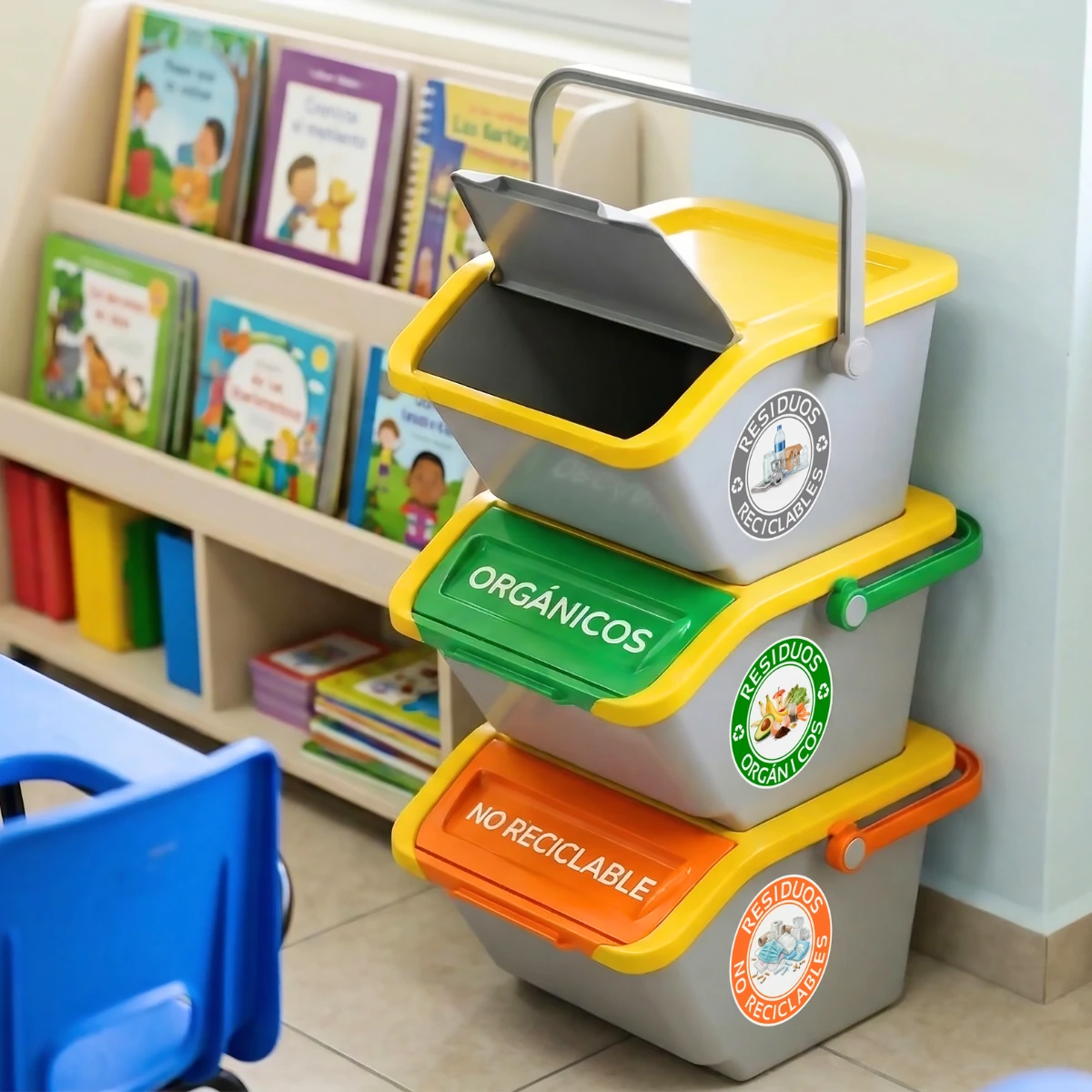 Su diseño compacto permite aprovechar el espacio sin saturarlo. En lugar de dispersar varios contenedores en diferentes puntos, este sistema apilable organiza la clasificación en un solo módulo vertical. Así, los usuarios identifican rápidamente dónde depositar cada residuo y el entorno mantiene una apariencia más limpia y ordenada. Este enfoque resulta especialmente útil en escuelas, oficinas y áreas interiores donde cada metro disponible tiene valor.