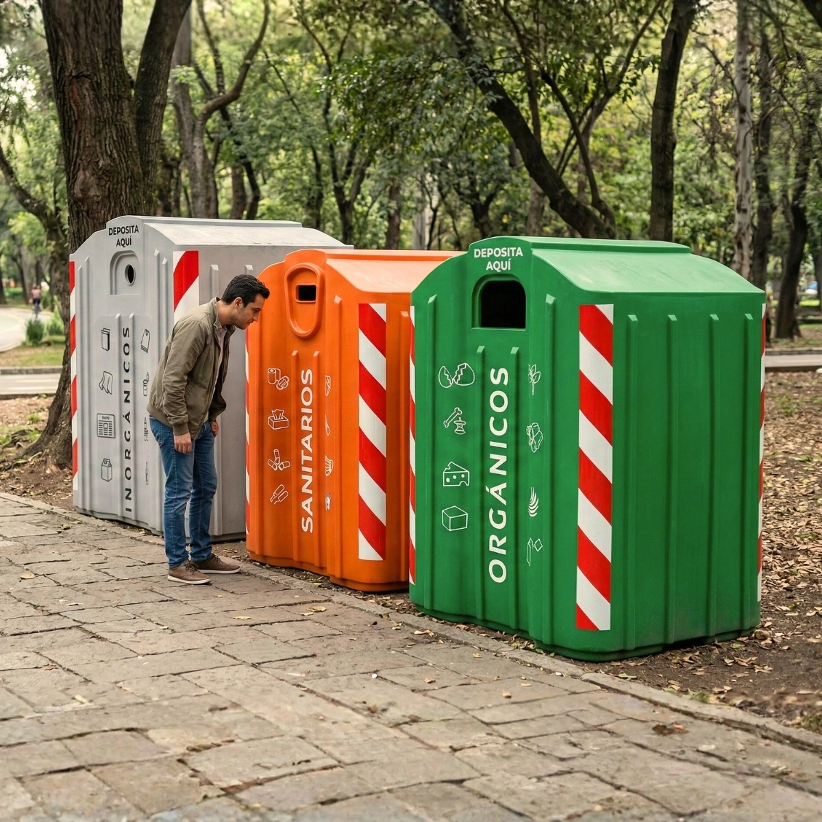 Fabricado en polietileno de media densidad con un grosor promedio de 5 mm, las Islas de reciclaje son altamente resistentes a impactos y a las condiciones climáticas, gracias a su protección contra rayos UV. Además, su tecnología antigraffiti facilita el mantenimiento, ya que cualquier pintura puede limpiarse fácilmente con un trapo y jabón.