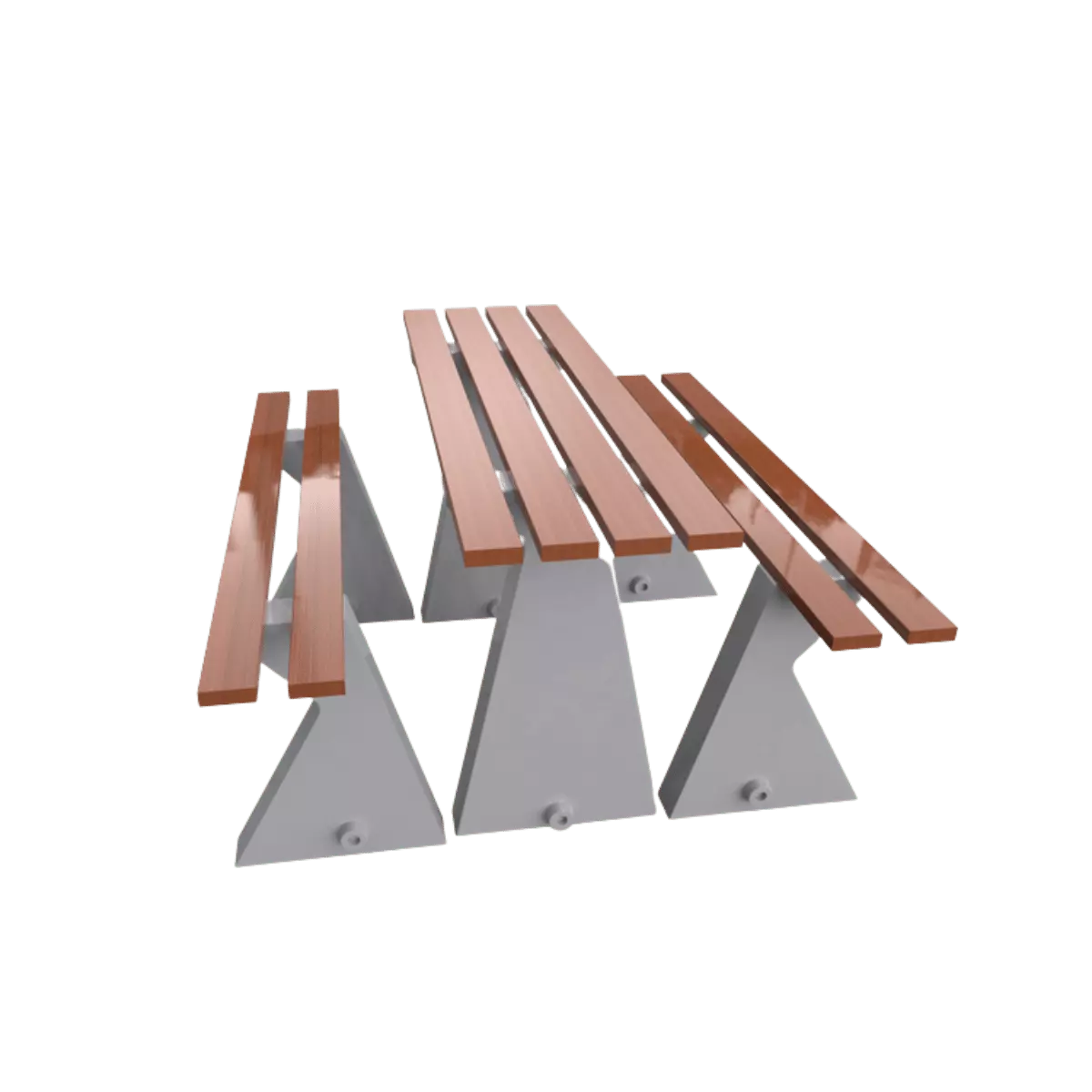 Mesa para picnic diseñada para áreas comunes en parques municipales, su objetivo es fomentar la convivencia familiar en exteriores.