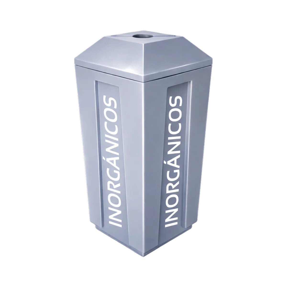 La tapa piramidal define con claridad el punto de depósito y dirige los residuos hacia el interior. Su diseño facilita el uso y evita que los desechos queden fuera del contenedor. Además, puede incorporar rotulación según el tipo de residuo. Esto refuerza la correcta disposición desde el primer contacto, sin necesidad de explicaciones adicionales.