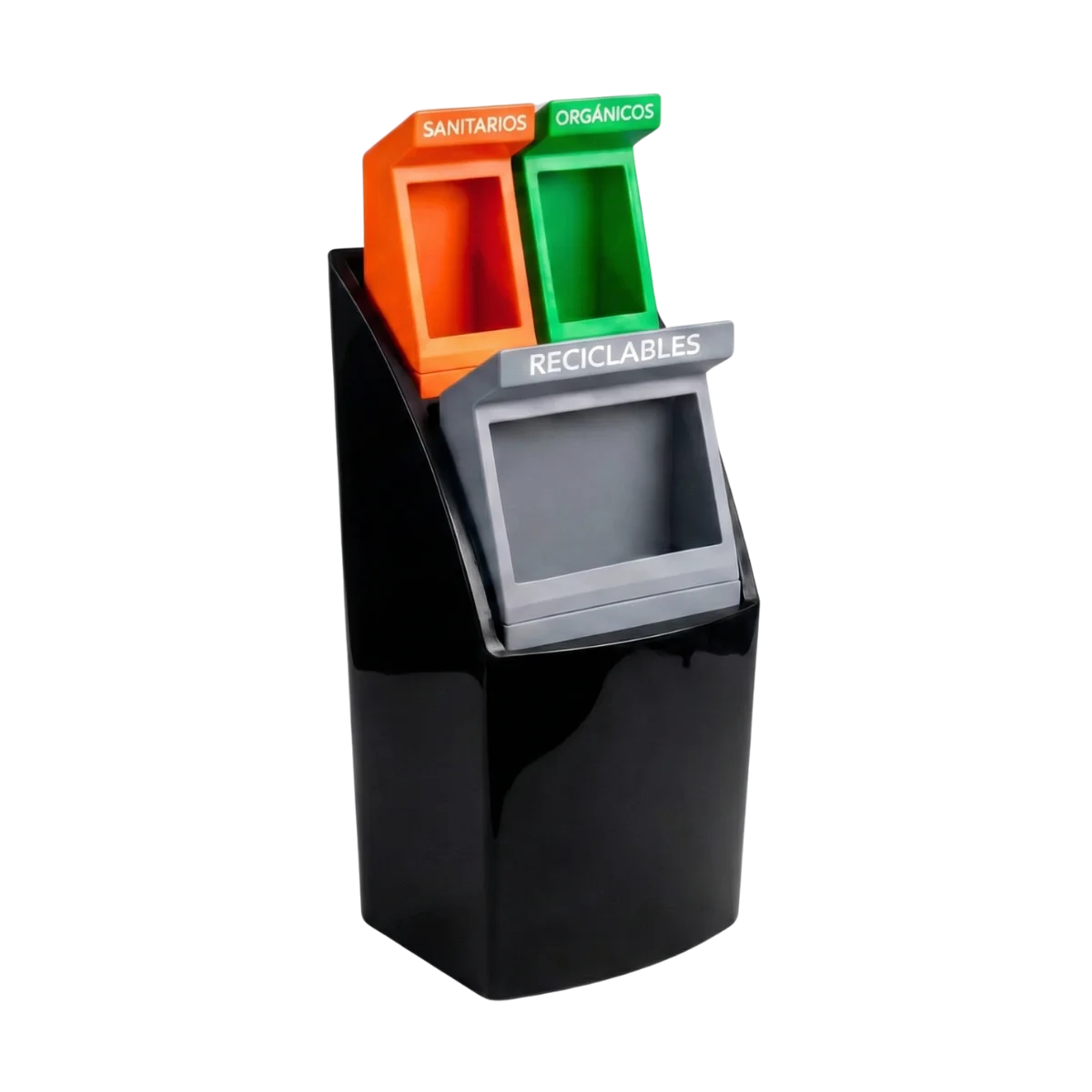 Además, esta solución fue pensada para entornos donde el espacio disponible es limitado y cada elemento debe cumplir una función clara. Por ello, resulta ideal para oficinas, escuelas, hospitales, áreas comunes y espacios públicos que requieren orden sin saturar el entorno. Al integrar varias opciones de separación en una sola estructura, se optimiza el uso del espacio y se mantiene una imagen limpia y organizada. De este modo, la separación de residuos se incorpora al entorno de forma discreta y funcional.