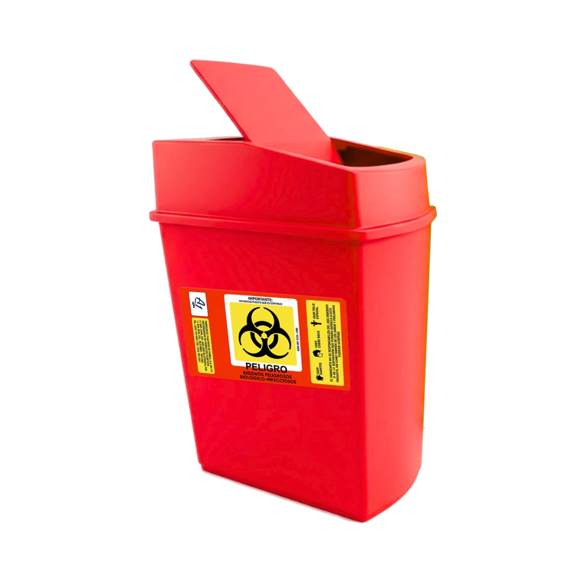 Su funcionamiento es directo y efectivo. La tapa tipo balancín permite depositar los residuos sin introducir las manos ni generar interacción con el interior. El residuo entra, la tapa regresa a su posición y el contenido queda contenido de inmediato. Este mecanismo sencillo reduce de forma clara el riesgo de contacto, especialmente en el manejo de residuos biológico-infecciosos.