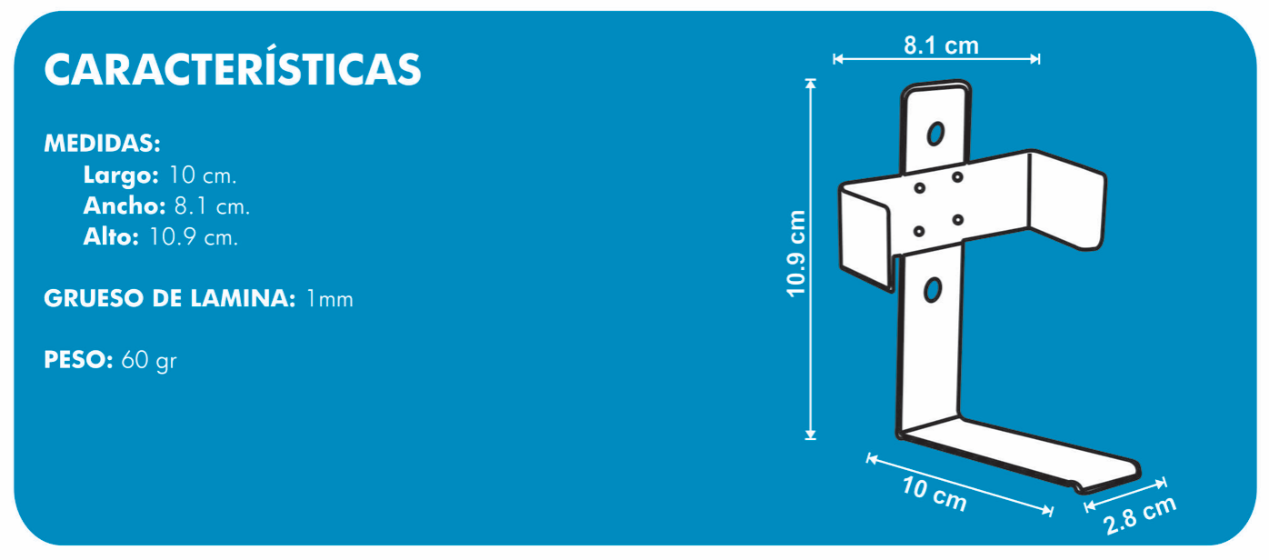 Diseñado para colocar a la pared el recolector de punzocortantes PC-1 Y PL-1. Útil para recolección de residuos sin tener que levantarlo para su transportación, evitando que el usuario tenga contacto directo con algún residuo.