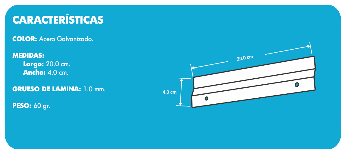 Fabricado en acero galvanizado, este sujetador ofrece una resistencia superior a la corrosión, asegurando una larga vida útil incluso en ambientes de alto tránsito. Su diseño robusto permite fijarlo de manera firme a la pared mediante sus dos perforaciones estratégicamente colocadas, proporcionando un soporte confiable para el recolector.